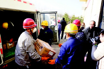 工作人员在搬运准备销毁的药品。(图片由青岛市食药局提供)