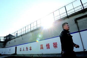 ▲高墙筑起的看守所,是张友军挥洒青春的地方。 ◤一名在押人员转到监狱后给张友军写的信,每个月他都会收到几封这样的信。本报记者 刘涛 摄