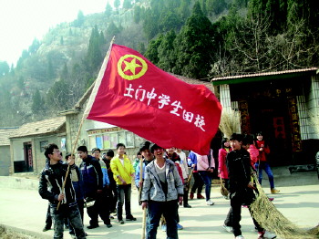 近日,沂源县土门中学团校组织团员学生来到池埠社区开展“拒绝白色污染,美化社区环境”志愿服务活动。