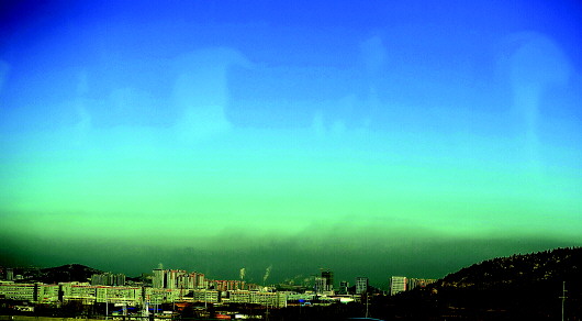 17日、18日两天,济南迎来罕见蓝天。站在济南东郊历城区和章丘市交界处附近山上向北看,能清晰看到蓝天下,黑乎乎的烟尘带,热电厂大烟囱冒着浓烟。透明度高的天气,困扰市区的空气污染看得清清楚楚。
