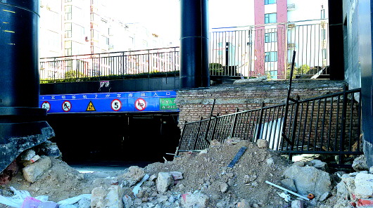 原来的台阶左侧就是地下车库,这个车库成了小区居民近半年的“临时通道”,从朝着马路的车库走进去,向右拐,沿着一段通向小区的楼梯上去,相当于绕了个大弯路。“小区里有200多户居民,住着很多老年人,每天和车一起走地下车库,车库通往小区的楼梯连个扶手都没有,非常危险,平时孩子来看望我们也不方便。”一位居民称。
