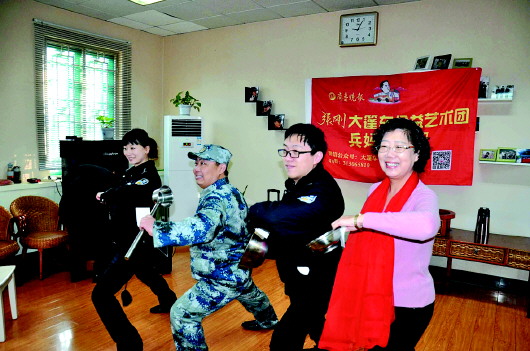 11日,齐鲁晚报张刚大篷车公益艺术团兵妈妈分团在“兵妈妈”齐亚珍的带领下到泉城路派出所慰问演出,为派出所民警送上了精彩演出。之后,民警和艺术团成员一起包水饺,拉家常。