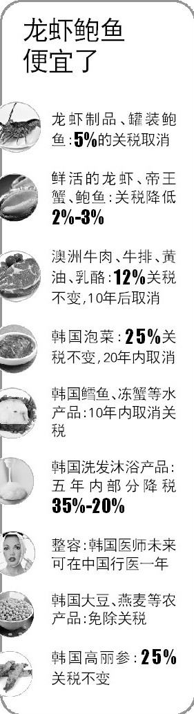 其中,中韩自贸协定项下,6018个税号项下中国原产货物、1649个税号项下韩国原产货物将在对方立即享受零关税;中澳自贸协定项下,5662个税号项下中国原产货物、2402个税号项下澳大利亚原产货物将在对方立即享受零关税。