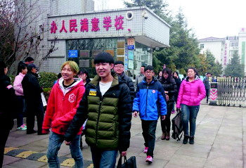 早上7点,在高新区东明学校前,已经站满了前来参加考试的学生和送考的家长,各地画室、培训学校的送考车辆挤到一起。