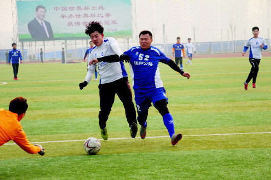 20下午,市民健身广场迎来了重头戏,山东一卡通对阵滨州公路,虽然室外气温很低而且雾霾严重,但这种天王山之战也迎来了很多不畏严寒的球迷,这场比赛的关注度及重要性不言而喻,因为谁拿下这场比赛谁就有可能拿下首届滨超联赛的冠军头衔。比赛开始后双方拼抢很激烈,滨州公路则利用反击威胁着对方球门,比赛进行到20分钟时滨州公路的52号曹清波接26号程博的一记妙传,抢在对方门将出击前将球送入网窝,1:0上半场滨州公路领先,最终滨州公路力克领头羊在积分榜上占据了联赛的头名位置。
