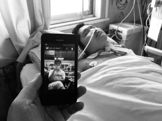 父亲手机里患病前的张腾是个阳光帅气的男孩,与现在躺在病床上的张腾判若两人。