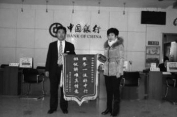 面对客户的感谢,王春峰表示,中国银行一直秉承“担当社会责任,做最好的银行”的服务宗旨,急客户之所急,想客户之所想。“我们的服务是通过行动来诠释的,让客户真切地感受到银行的温暖服务,让他们有宾至如归的感觉,这是我们一直以来的服务理念,我们也会继续发扬下去。” (李明远)