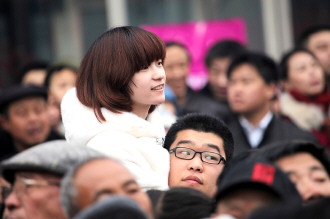 时间:2015年12月1日 自述:街头活动中,观众人群中的美女被男友高高托起。 点评:抱起佳人,时间不一定久但就是特别甜蜜。