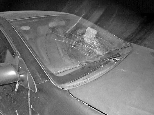 12月21日23时许,王某某酒后驾驶轿车沿315省道行驶至平原县坊子乡政府驻地,当他停车到路边一家商务宾馆买烟后上车准备继续前行时,从这家宾馆中走出五六个人朝他招手,说搭车去前边不远处的KTV。看到这些人喝了不少酒,王某某拒绝了他们的搭车要求。这时有两个人挡在轿车前,王某某开车想避开他们,没想到其中一男子竟然手持一块砖头,将王某某轿车的前挡风玻璃砸坏。