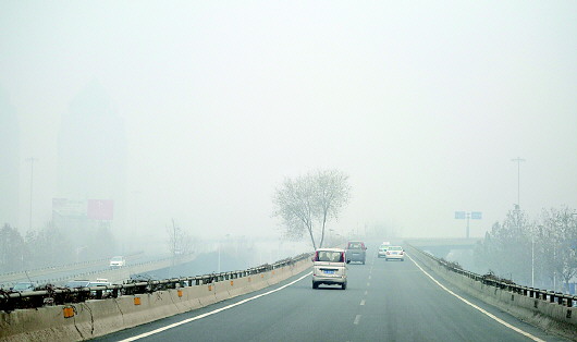 23日,济南雾霾弥漫,AQI数值一度爆表,城市一片白茫茫。