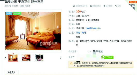 随着年底的临近,不少在商河打拼的年轻人开始寻找自己“来年的家”。赶集网、58同城等网站迎来了浏览高峰期。不少年轻人反映,在浏览网页的过程中,发现不少租房信息并不靠谱,租房留的电话不是空号就是停机。看着水电暖齐全的单身公寓只需300元,不少房客急呼“房主您去哪了?”