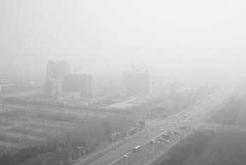 23日,莱山南部地区在一片雾霾中,能见度较差。当日,烟台持续雾霾天气,专家提醒,患有呼吸系统疾病的市民应尽量减少外出。