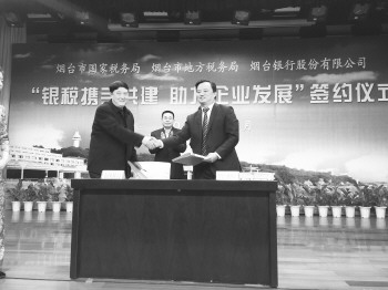 本报12月23日讯(记者 李园园) 22日,烟台市国税局、地税局、烟台银行“银税携手共建 助力企业发展”签约仪式举行,政府与银行共同搭建“银税互动”平台,帮助小微企业解决融资难问题,纳税信用等级高的小微企业,无需抵押物即可在银行贷到款。