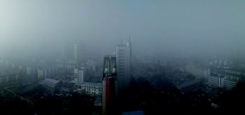 整个城区一片灰蒙蒙。 本报记者 邓兴宇 摄