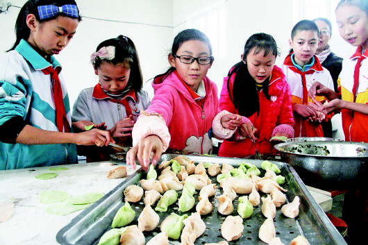 日前,文登区实验小学开展了“喜迎元旦,关爱留守儿童”活动。校园妈妈和校园哥哥、姐姐们参加。活动中,校园妈妈向孩子们讲解了元旦的风俗习惯,当天中午,留守儿童们吃上了热气腾腾的彩色饺子。