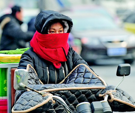 ◤21日,济南街头,大批市民用严密的御寒装束迎接即将到来的45年一遇的极寒天气。 本报记者