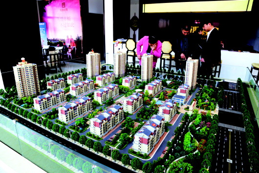 3月16日上午,市民在邹城一房地产销售中心看该地产的沙盘并询价。 本报记者 黄广华 摄