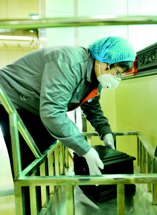 中午时分,张凤莲顾不得吃饭,先将整理好的骨灰盒送到窗口,以免逝者的家属因等待而焦急。