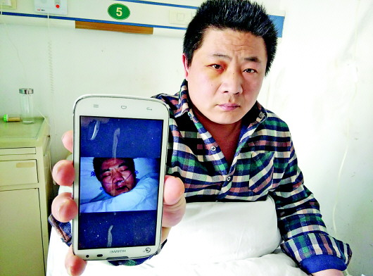 17日早晨,恒通和宝来出租公司的哥赵同、朱延伟、陈松及黄立国来到山东省警官总医院,看望受伤的鲁能出租公司的哥孙德利。想起5天前的遭遇,孙师傅仍旧心有余悸。