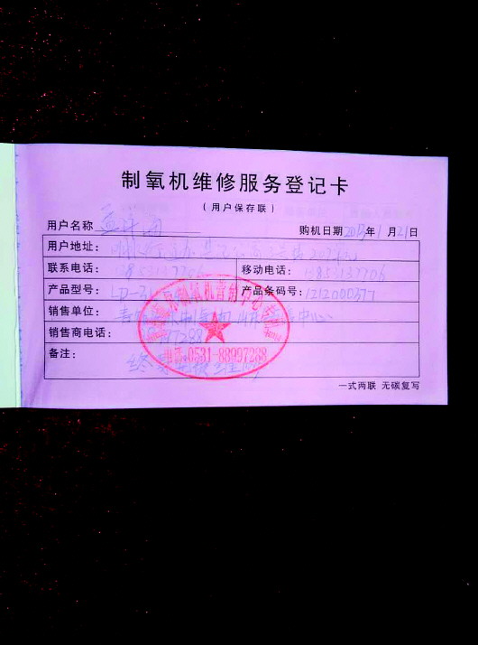 直到2015年5月,孟先生发现制氧机老是无故停止工作,便打电话给那位工作人员,电话竟然停机了,维修服务登记卡上注明的销售商电话也成了空号。虽然这样,孟先生并不着急,“怕么呀,海尔是大品牌,还能找不到售后吗!”随后,孟先生拨打了海尔的客服电话,工作人员的话让孟先生很是不安。原来,孟先生被告知制氧机的生产厂家与海尔的合作关系解除,现在产品的售后维修要去找厂家。