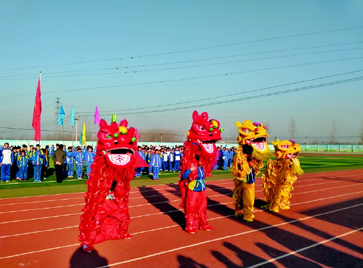 10日上午8时许,孙耿镇中学操场上聚集来自全镇各个中小学的学生,每个班级代表队均穿着统一衣服并迈着整齐的步伐走过主席台。来自孙耿镇大路小学的学生还为现场师生带来舞狮表演。