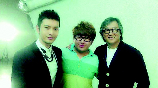 ▲王瑀(中)参加选秀节目时和明星的合影。