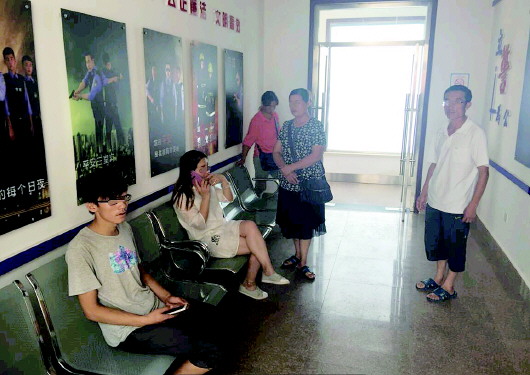 常升一家在派出所等待处理结果。 本报记者 刘震 摄