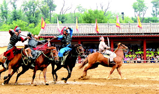 清明上河园,还原沙场上奔腾的战马。