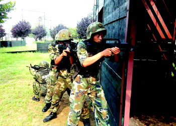 模拟演练中,甄理带领战士们突击。