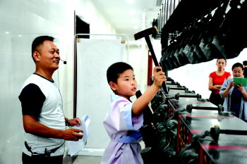 小营员学习敲编钟。