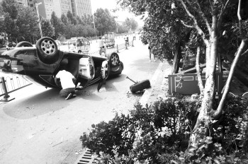 危险的碰撞 来源:齐鲁晚报 2016年08月04日 8月3日中午,天衢路上一辆黑色轿车与另一辆车发生擦碰后,先后撞上防撞墩和广告牌后发生翻车,车辆受损严重,引众多路人围观,幸好司机并未受伤。 本报记者 马志勇 摄 本稿件所含文字、图片和音视频资料,版权均属齐鲁晚报所有,任何媒体、网站或个人未经授权不得转载,违者将依法追究责任。