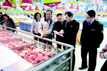 在监管方面,3家主要批发市场设立了市场监管所,在18家批发市场、95家农贸市场设立了监管员。全面实施了市场质量保证金制度,对各类市场收取质量保证金1495万元。实施了严格的农产品退市制度,有80多家在商场超市和批发市场被抽检不合格的违法违规经营业户被退市。建立了严格的检验检测和不合格农产品销毁制度,对入市农产品每车必检、每品种必检,全年共检出并销毁不合格农产品120余吨。经治理,全市市场农产品合格率从92%上升至96%。