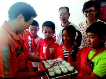 做月饼送环卫工 来源:齐鲁晚报 2016年09月19日 为了对学生进行传统文化的教育,挖掘传统节日的新意,济南市燕柳小学开展了“月圆中秋福满校园”主题实践活动。学生和家长一起亲手制作了各式各样的月饼,送给了社区环卫工人。 本报记者 李飞 通讯员 潘玲 摄影报道 本稿件所含文字、图片和音视频资料,版权均属齐鲁晚报所有,任何媒体、网站或个人未经授权不得转载,违者将依法追究责任。