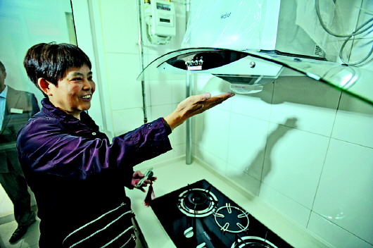 房屋设施齐全,居民试用新厨具。本报记者 戴伟 摄