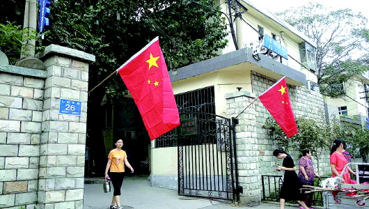 临近国庆,位于山师东路商业街的沿线单位纷纷挂上了国旗,以此来表达自己浓烈的爱党、爱国之情。与此同时,这条街也成为文化东路街道的“国旗一条街”。 在一家美甲店上班的小李对记者说:“我们店门口挂上了国旗,一抬头就能看到飘扬的国旗,我感觉特别自豪。”