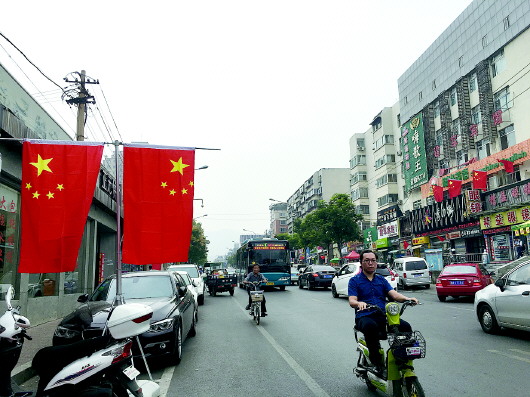 “国旗一条街”亮相 山师东路全线飘“红”