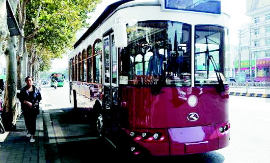 以“梦回济南府”为主题的5部“民国风”铛铛车于9月30日在游777路正式运营。本报记者 孟燕 摄