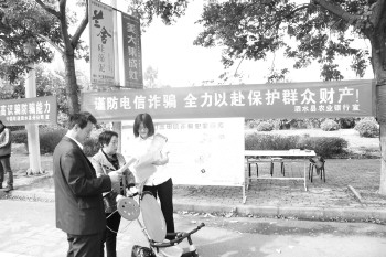 9月29日,泗水县农行在县科技文化广场开展了防范电信诈骗宣传活动。工作人员向过往居民发放了常见电信诈骗手段宣传页,讲解了犯罪分子常用的诈骗手段及应对措施,提醒居民在接到诈骗电话、短信或登录互联网时,提高警惕,做到及时识别,有效防范。