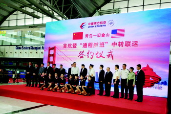 9月29日下午1点,由东航执飞的MU767青岛—旧金山航班飞离青岛机场,青岛—旧金山航线正式开通。今后,每周二、四、六,青岛和旧金山都有航班对飞,整个航程约飞行12个小时。