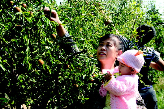 游客正在采摘冬枣。 本报记者 王晓霜 摄