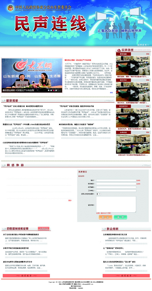 图为山东省政协官方网站“民声连线”页面。这个民意分析报告就来源于省政协“民声连线”活动的240万条网友评论等数据。