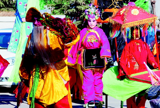 9日早上7点多钟,东舍坊高跷艺术团的成员早早就来到活动中心开始化妆,这其中既有六七十岁的老人,也有不满十岁的小朋友。由于演出需要,艺术团内的演员大多都是自己化妆,“自己动手,丰衣足食。”艺术团成员李传运笑着解释。