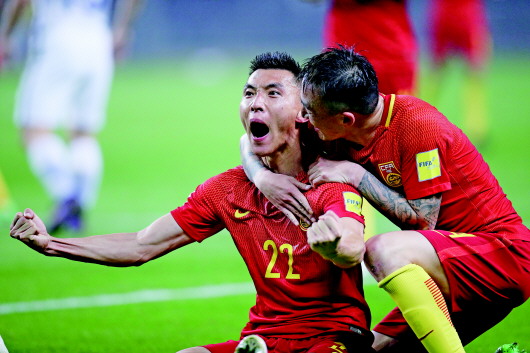 齐鲁真汉子 来源:齐鲁晚报 2017年03月24日 22日,武警山东总队直升机大队特战队员悬索速降。作为武警全国七支直升机大队之一,主要担负华东六省一市反恐维稳、抢险救灾等任务。 本报记者 戴伟 摄 23日,中国队球员于大宝(左)进球后与王永珀庆祝,二人都是山东籍球员。当日,在长沙举行的2018年俄罗斯世界杯预选赛亚洲区12强赛中,中国队对阵韩国队。 Osports供图 本稿件所含文字、图片和音视频资料,版权均属齐鲁晚报所有,任何媒体、网站或个人未经授权不得转载,违者将依法追究责任。