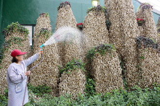 姜“山” 来源:齐鲁晚报 2017年03月24日 近日,枣庄市一家农业生态园用5吨食用的生姜“砌垒”起长16米、宽高各5米的一座“姜山”。“山”的内部填充着营养物品,生姜靠其营养发芽后长成一座绿色“姜山”,成为生态园内一处惹人注目的景观。 本报通讯员 吉吉吉 摄影报道 本稿件所含文字、图片和音视频资料,版权均属齐鲁晚报所有,任何媒体、网站或个人未经授权不得转载,违者将依法追究责任。