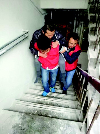 “夏季没人,张大爷就住在一楼的储藏室,但入秋过后,潮湿阴冷的环境不利于张大爷生活。”马海明说,他和同事商量对策,他负责背老人,同事负责将老人的特制床抬到五楼。老人过意不去,多次开口让马海明将他放下来,马海明担心长时间挤压,对老人会对老人原本脆弱的胸腔造成二次伤害,就一口气将老人背到了五楼。