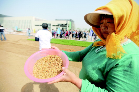 工作人员正在使用名为“多倍体”的水稻种子进行播种。 本报记者 张晓鹏 摄