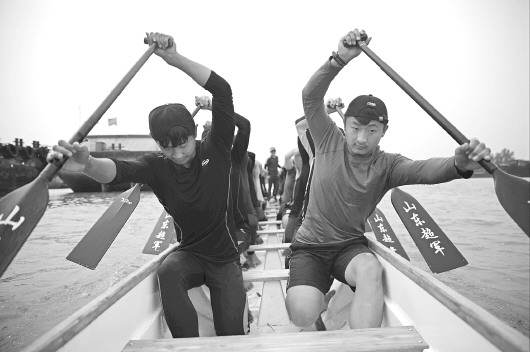因为队伍当中在校大学生比较多,很多人在龙舟队训练的同时,还要兼顾自己的学业,“我是大三的学生,现在面临着考研的问题,考研在12月份,而龙舟比赛在8月份,两者有些冲突。”来自枣庄学院的赵瑞鹏说,“家里最初是不大支持我来龙舟队的,不想让训练耽误我太多时间,但我说服了家人,我觉得在这里训练,也是我人生一次历练。”