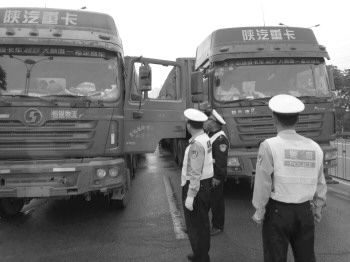 当日凌晨,任城交警大队二十里铺中队联合济宁市任城区公路局和济宁市任城区公安局特警大队在辖区洸河路严守以待,对路面大货车进行突击检查。