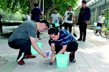 全民参与 创城义务劳动 来源:齐鲁晚报 2017年05月08日 7日,菏泽市政府办公室全体机关干部分成四个小组来到创城网格责任区开展创城志愿服务活动,利用铁锨、扫帚、铲子等工具对路面上的树叶纸屑、墙角的建筑垃圾、电线杆上的小广告等垃圾进行清理,将乱堆乱放的杂物、石块等进行集中清运。同时向周边市民积极宣传创城意义,希望大家不要乱堆乱放、乱贴乱画,从小事做起,从身边做起,为创建文明城市贡献一份力量。 本报记者 李德领 摄影报道 本稿件所含文字、图片和音视频资料,版权均属齐鲁晚报所有,任何媒体、网站或个人未经授权不得转载,违者将依法追究责任。
