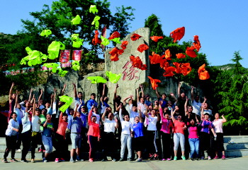 第四天为拓展训练,51人分成了橙色的梦之队和绿色的启航队两队,在两位教练的指导下,上午全体队员进行了十米高空跳板挑战项目,下午则进行了培养团队协作能力的五个小游戏,一天的拓展训练,累并快乐着,更加融合了集团一家人的理念。